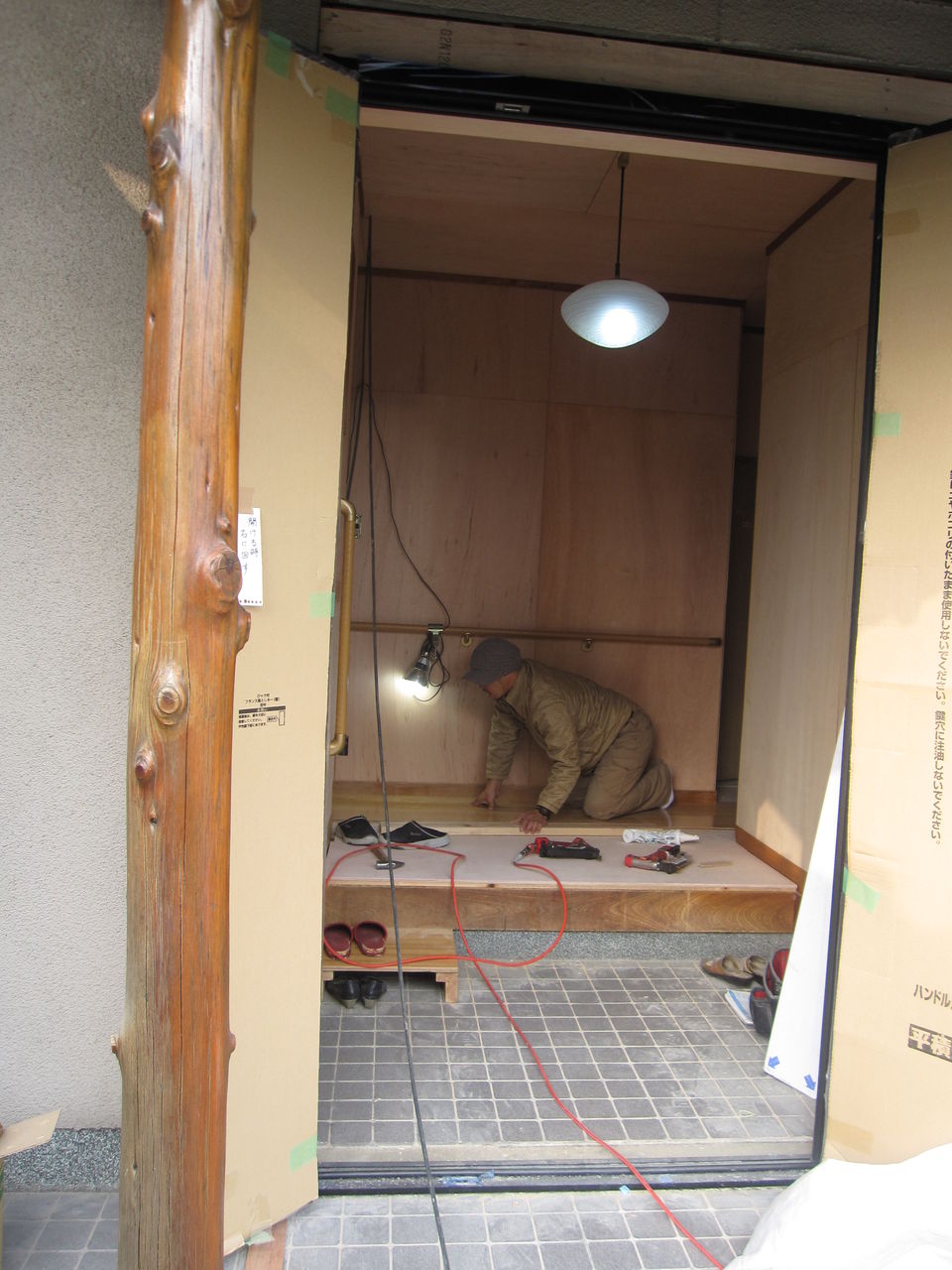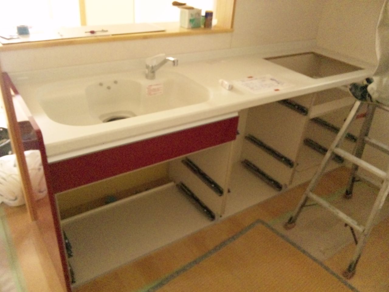 この日私は、今住んでいるところの引っ越しのために廃棄するごみの査定で行けなかったのですが、流し台が取り付けられ吊戸棚もつけられました。