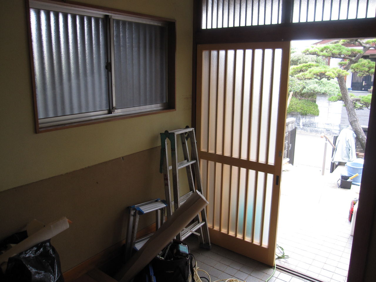 隙間ができてがたがた音のする階段横の飾りガラスも外したので