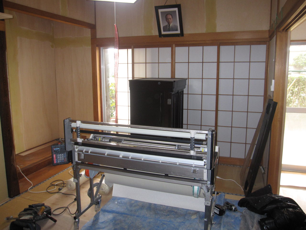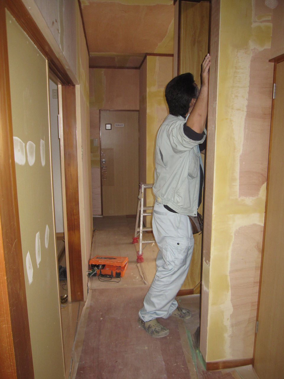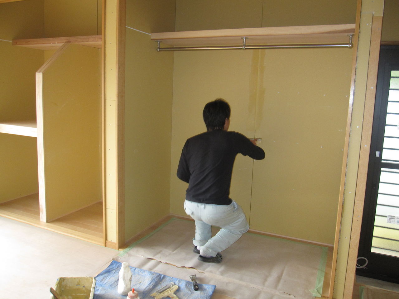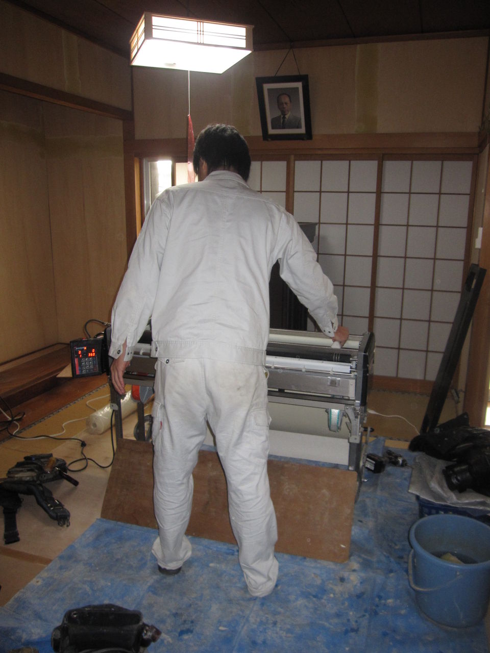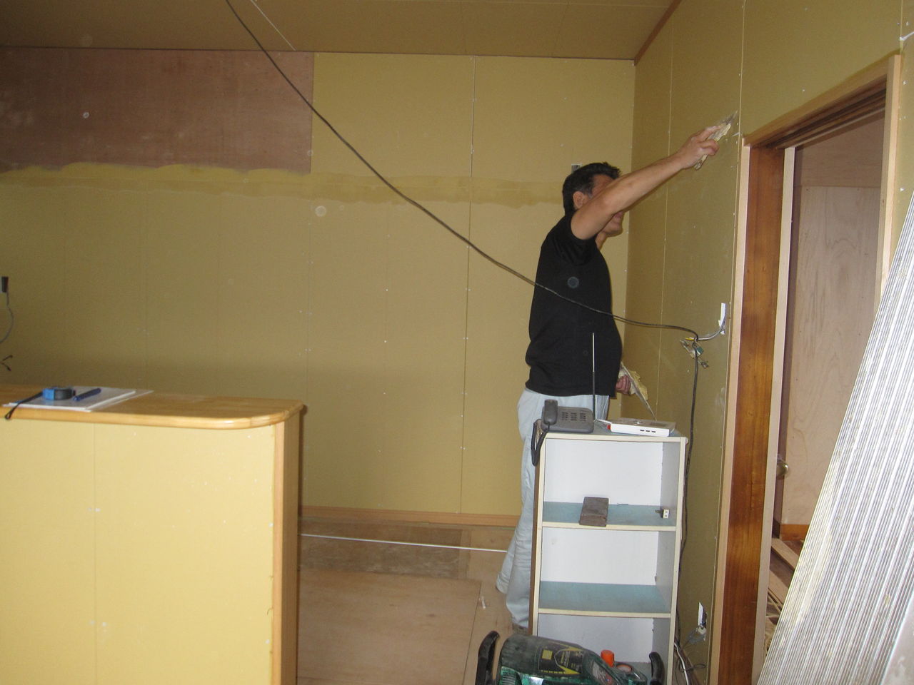 煙草のやにで汚くなってる居間の壁紙を張り替える・・・・