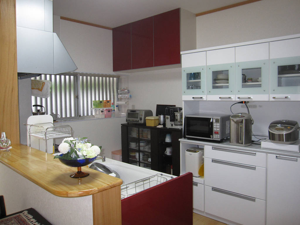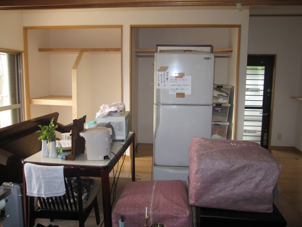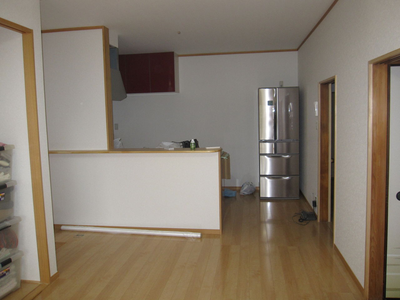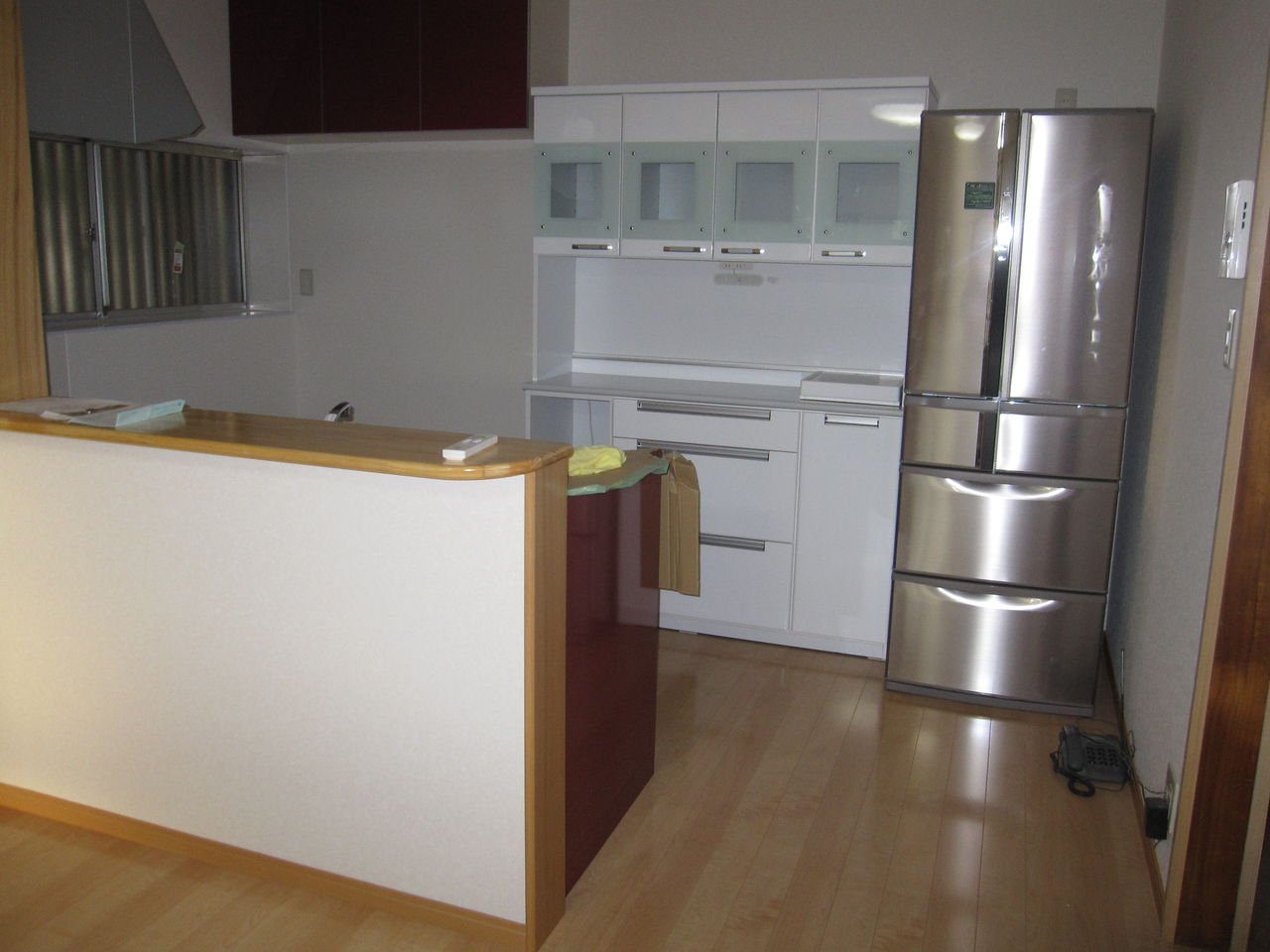 事前にきっちりと測っておいたので、冷蔵庫や食器棚も収まるはずです。