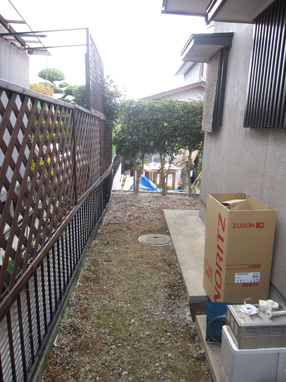 お隣との境や植込みのところを波板や木切れを針金で止めて囲ったり